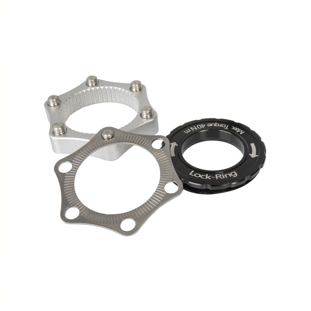 • ermöglicht die Montage von 6-Loch Bremsscheiben auf Center Lock Naben • aus Aluminium • CNC-gefräst