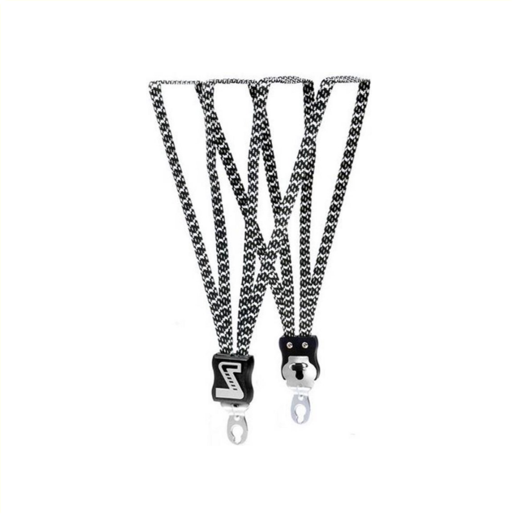 Der Simson Snelbinder Extra Long in Schwarz und Weiß verfügt über 4 robuste Ordner für den einfachen Transport von Gegenständen auf Ihrem Fahrrad.