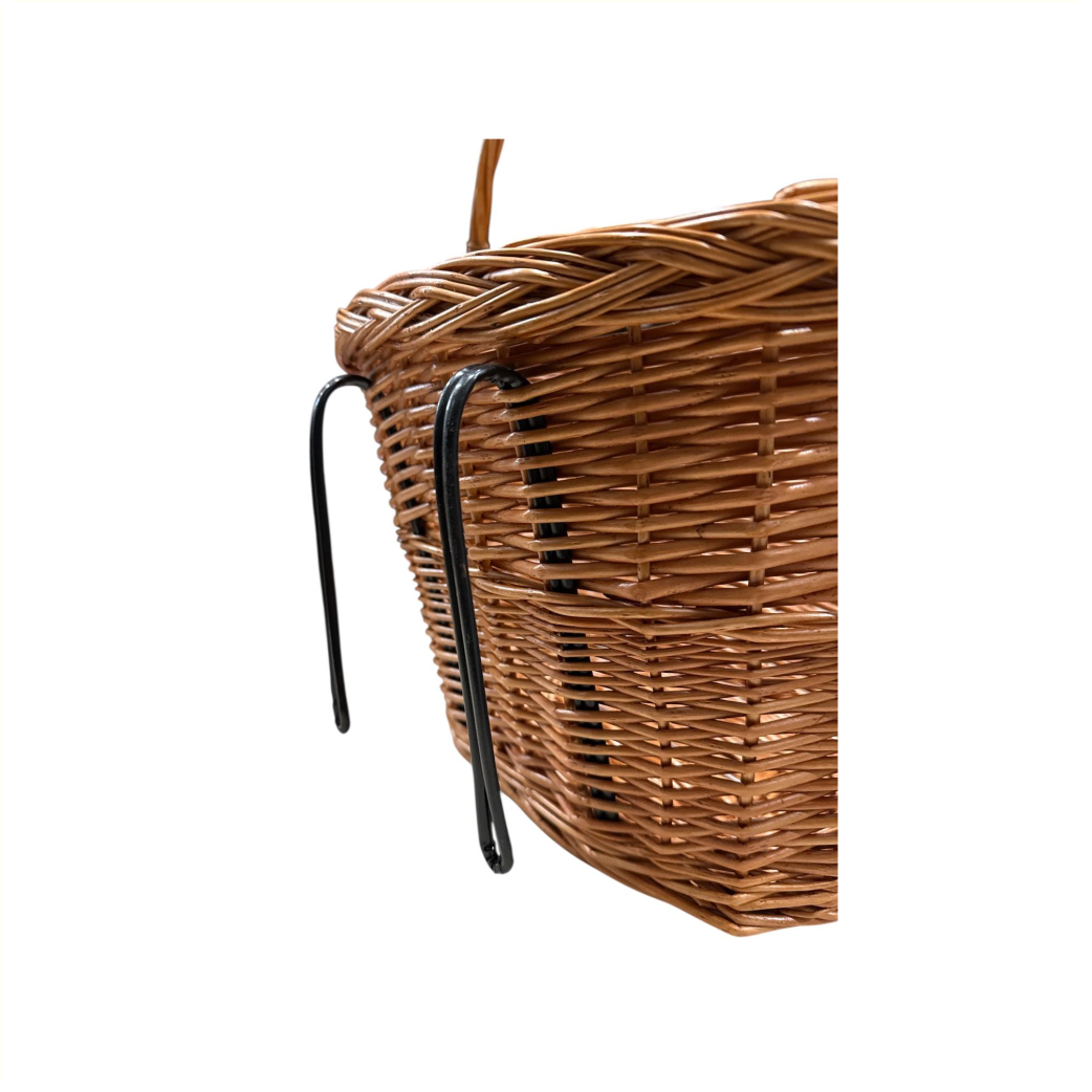 Dieser Weidenkorb passt auf den Lenker Ihres Fahrrads.