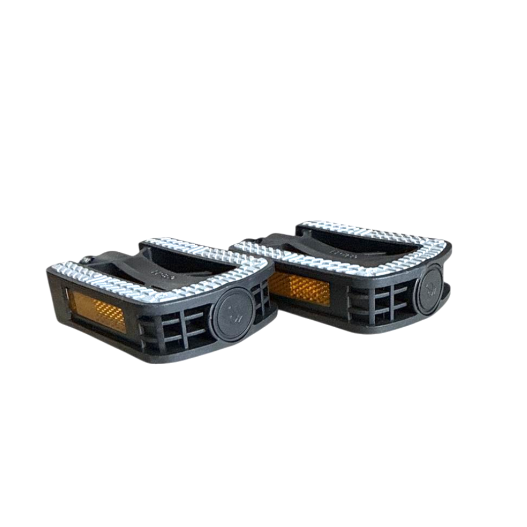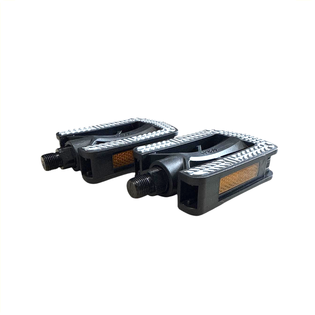 • Type of bike: city bike • Colour: black • Material: plastic • Anti-slip: yes • Weight set: 310 grams • Platform size: 6.5 x 9 cm (L x W) • Bottom bracket size: 9/16 inch • Equipped with reflection.