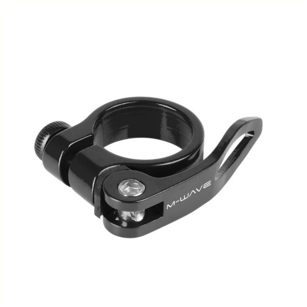 zadelpenklem met snelspanner promax Specificaties: Ean: 887539007669 Kleur: zwart Materiaal: aluminium Maat: 31.8 mm Merk: m-wave