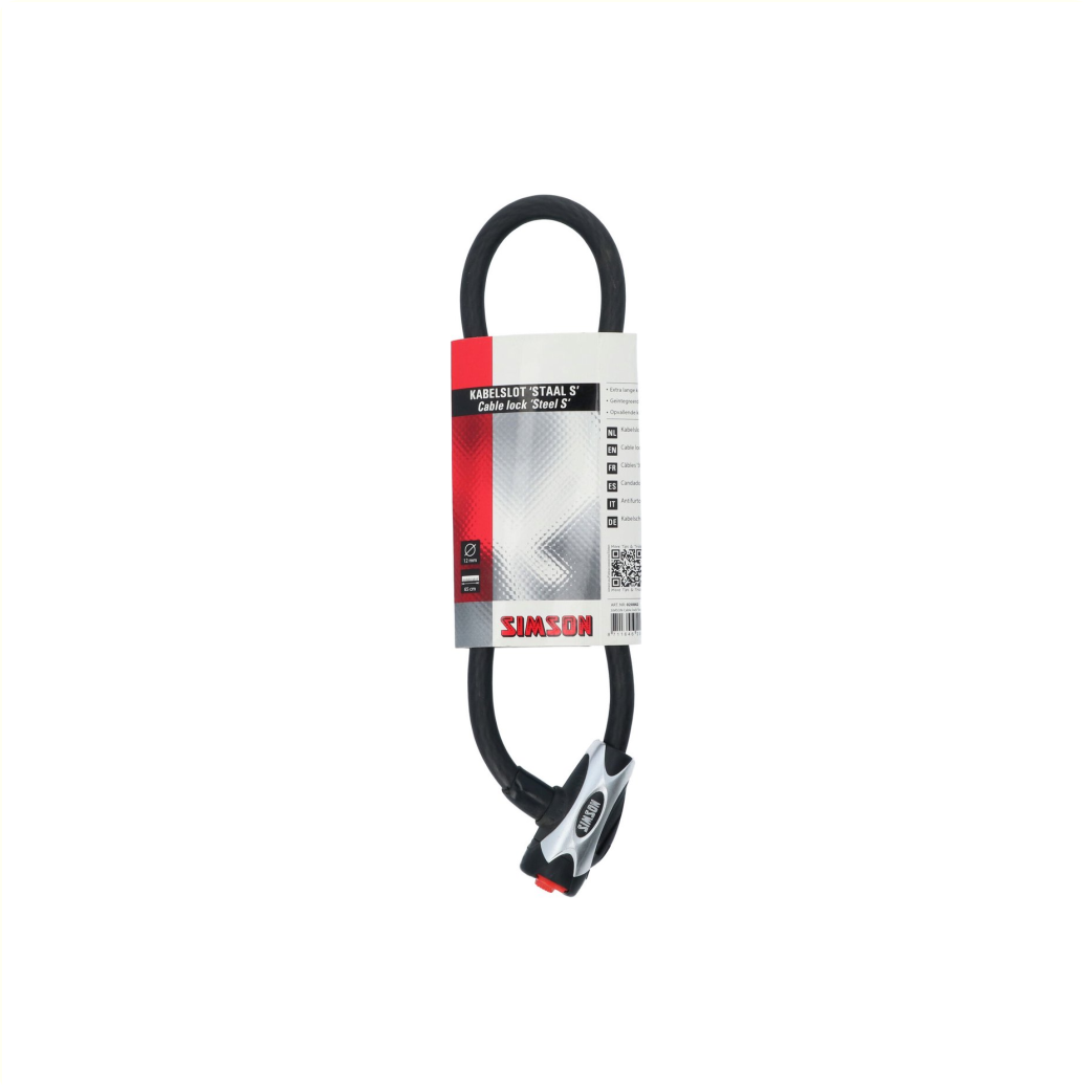 Das Simson Kabelschloss Stahl Größe S ist ein sehr leichtes und flexibles mattschwarzes Stahlkabelschloss.