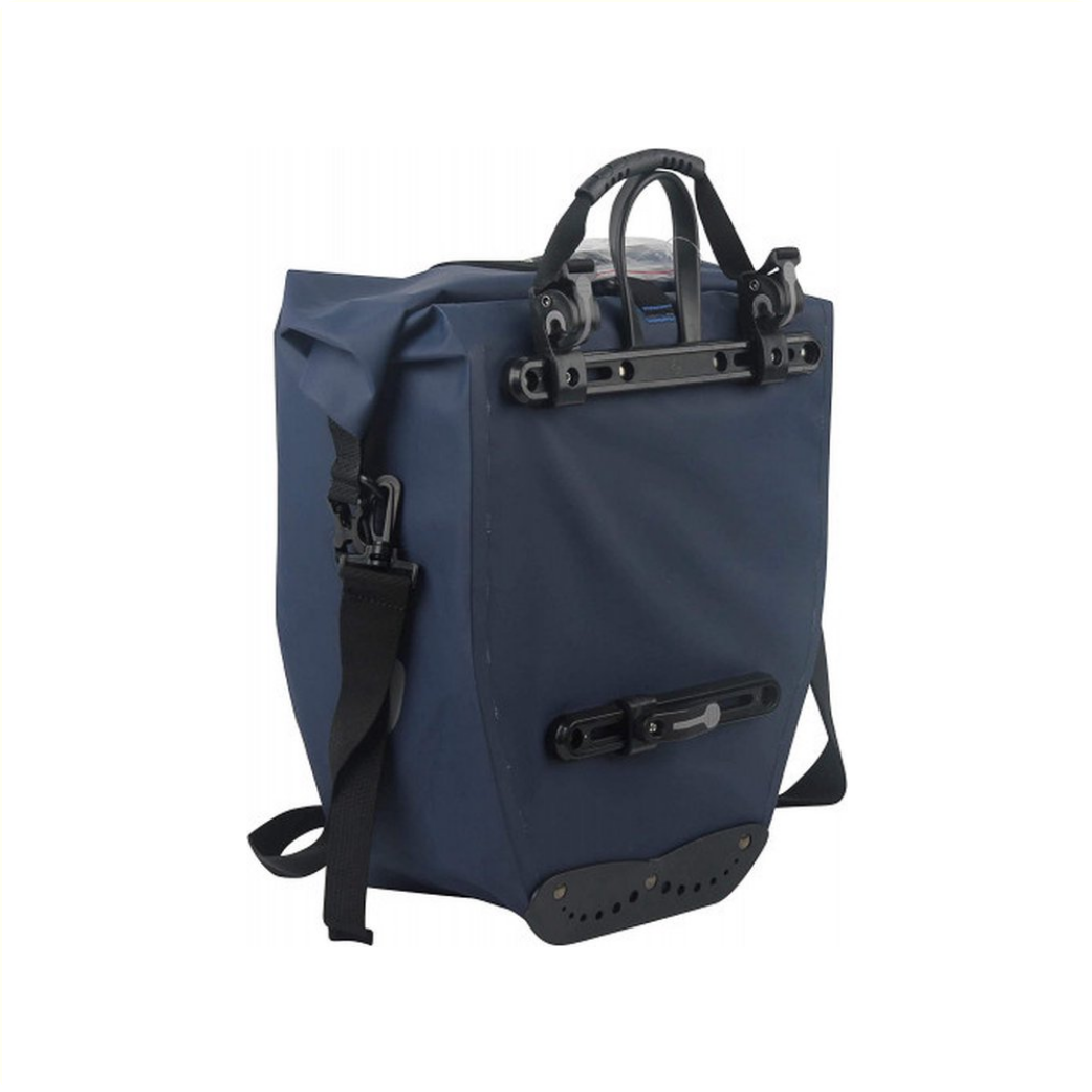 Büchel Einzeltasche • 100 % wasserdicht • Wasserdichter Reißverschluss • Abmessungen: 56,5 x 30 x 15 cm. • Volumen: 25,4L inkl. Hakensystem für den Gepäckträger. • Farbe Kleid Blau